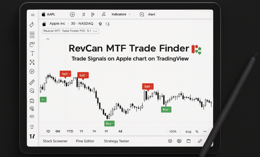 RevCan Trade Finder PRO is an AI-optimized trading signal analyzer that combines candle shape, volume, volatility and multi-timeframe data to deliver automatic BUY/SELL labels plus pop-up alerts on TradingView, MT4 and MT5 charts. It highlights price points where the market is “most likely to go” in the indicated direction, giving traders an automated trading signals edge.